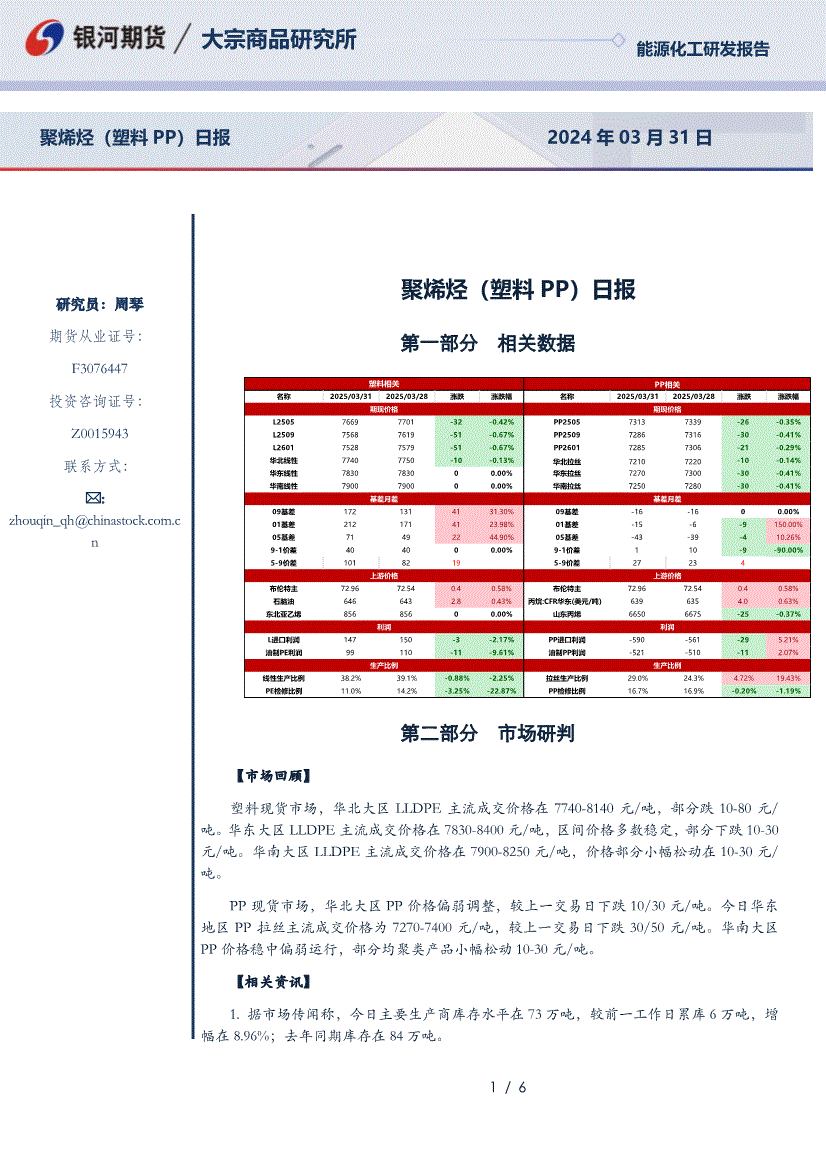 塑料现货市场,华北大区LLDPE主流成交价格在7740-8140元/吨,部分跌10-80元/吨。华东大区LLDPE主流成交价格在7830-8400元/吨,区间价格多数稳定,部分下跌10-30元/吨。华南大区LLDPE主流成交价格在7900-8250元...
