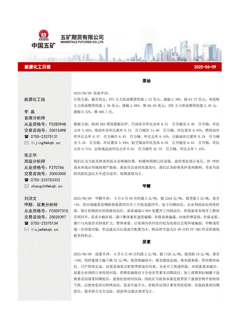 2025/06/09原油早评: