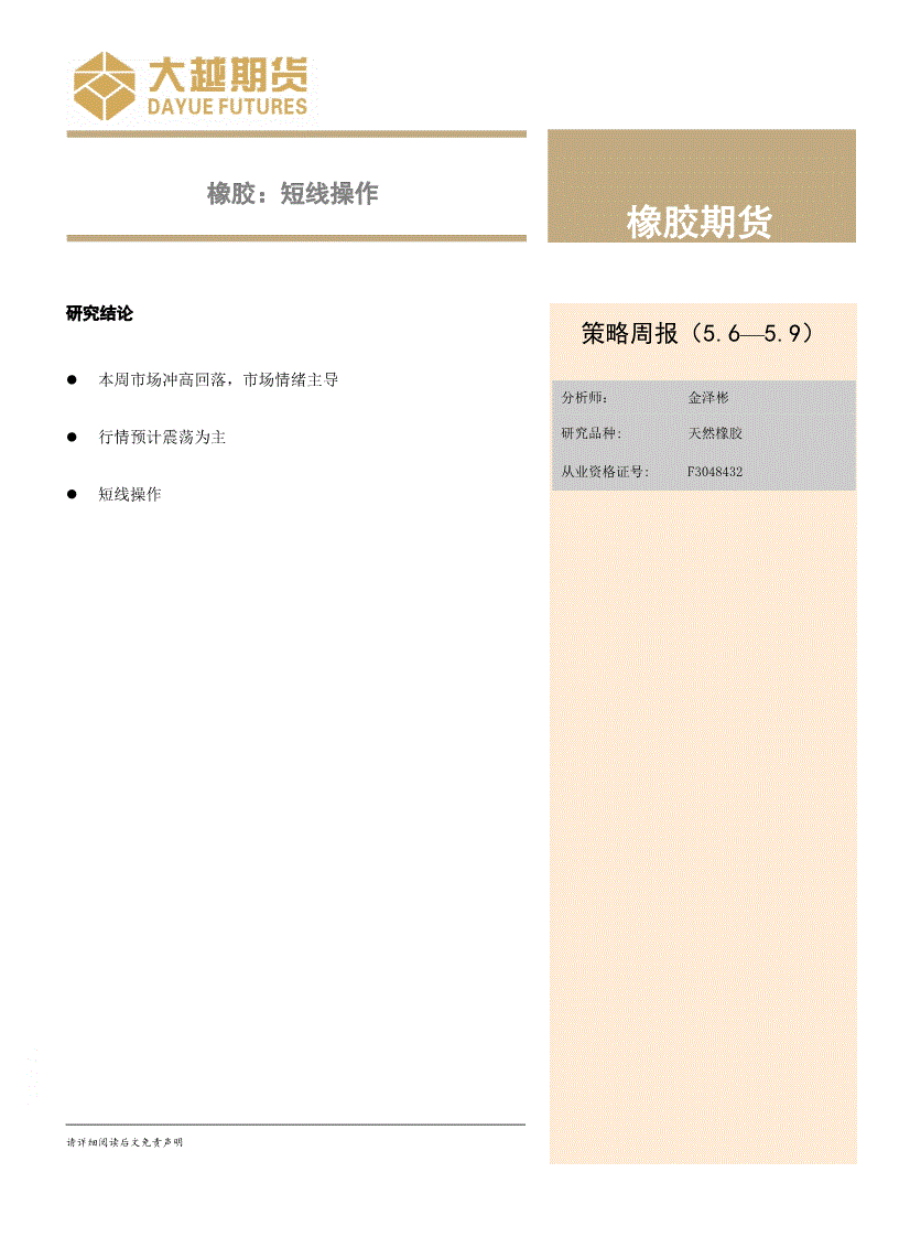 大越期货-橡胶:短线操作-250509